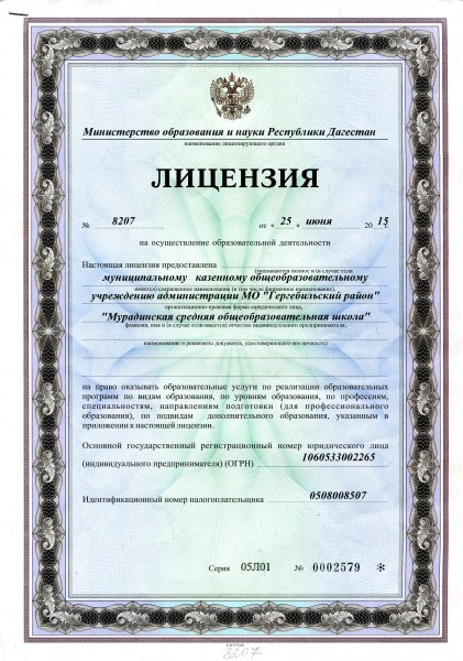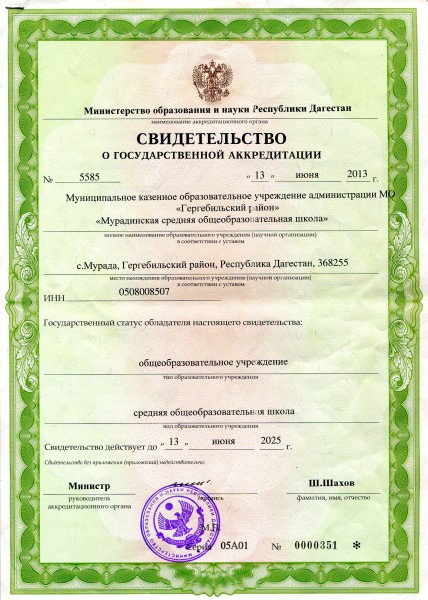 Полное наименование образовательной организации* Муниципальное казенное общеобразовательное учреждение администрации МО Гергебильский район "Мурадинская средняя общеобразовательная школа"