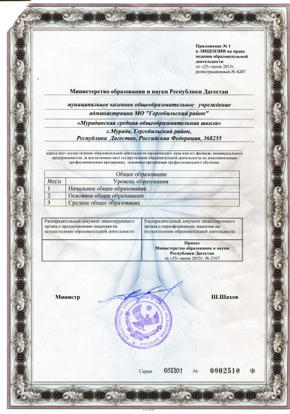 Адрес местонахождения образовательной организации* 368258, Республика Дагестан, Гергебильский район, с. Мурада